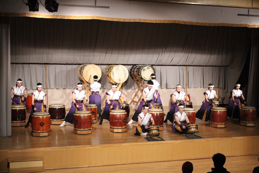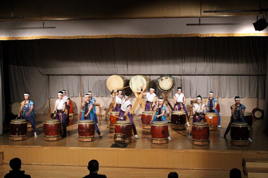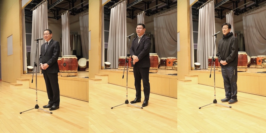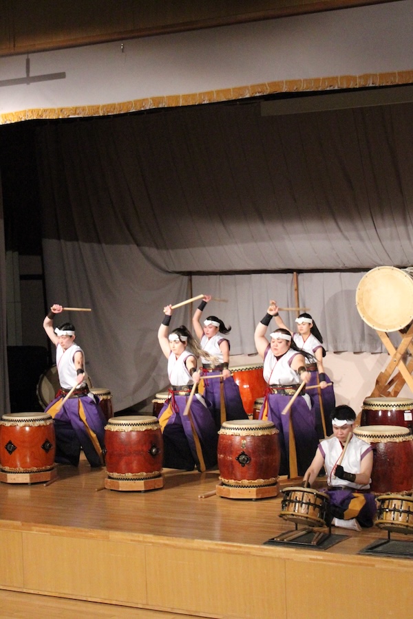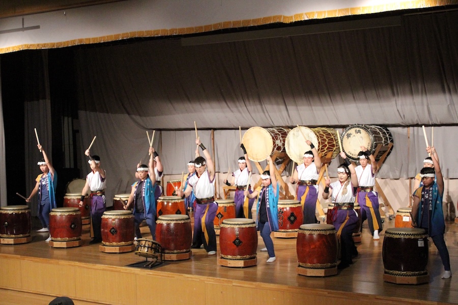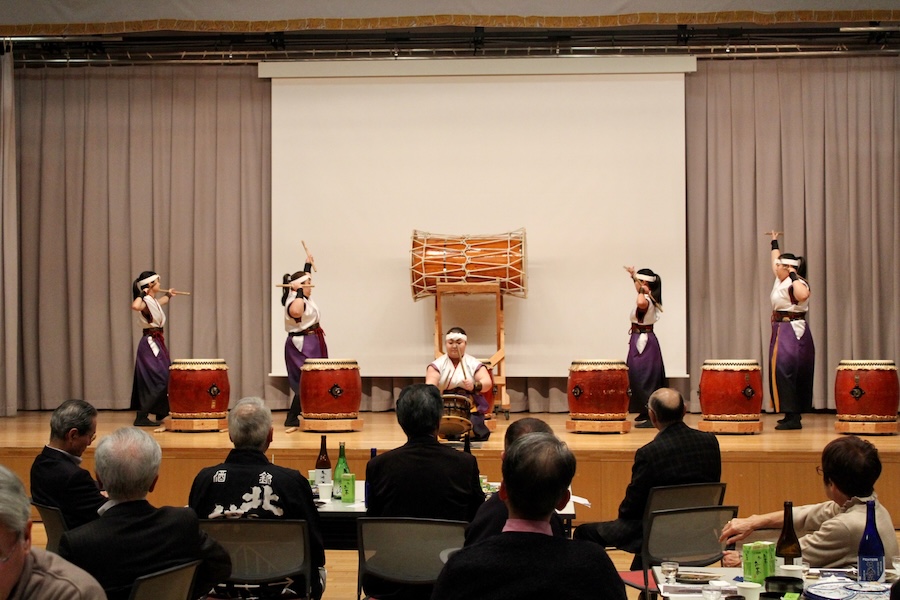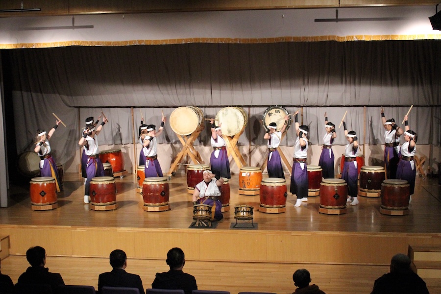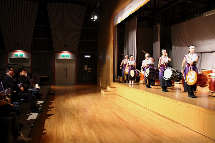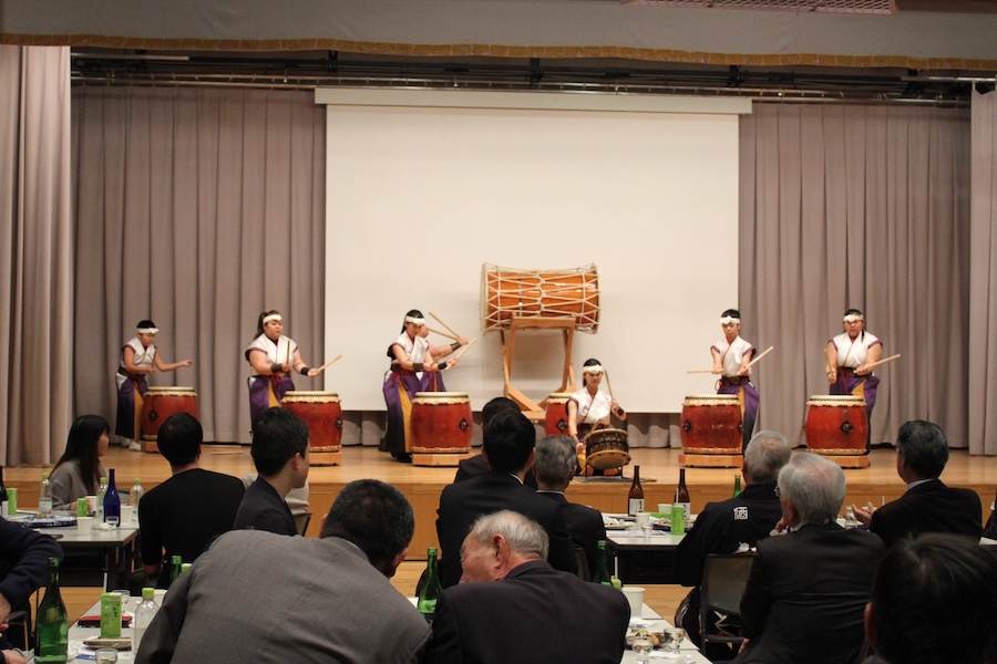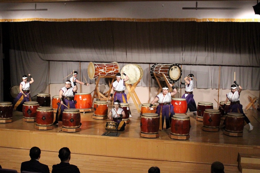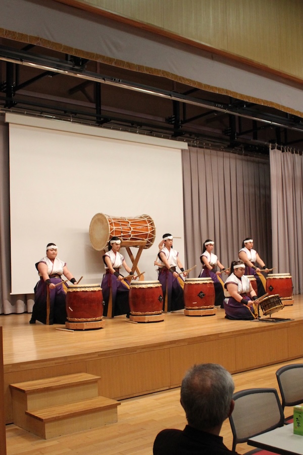 来賓からご挨拶をいただいた後は、さっそく演奏開始。栗山みのり太鼓、全曲を演奏しました。