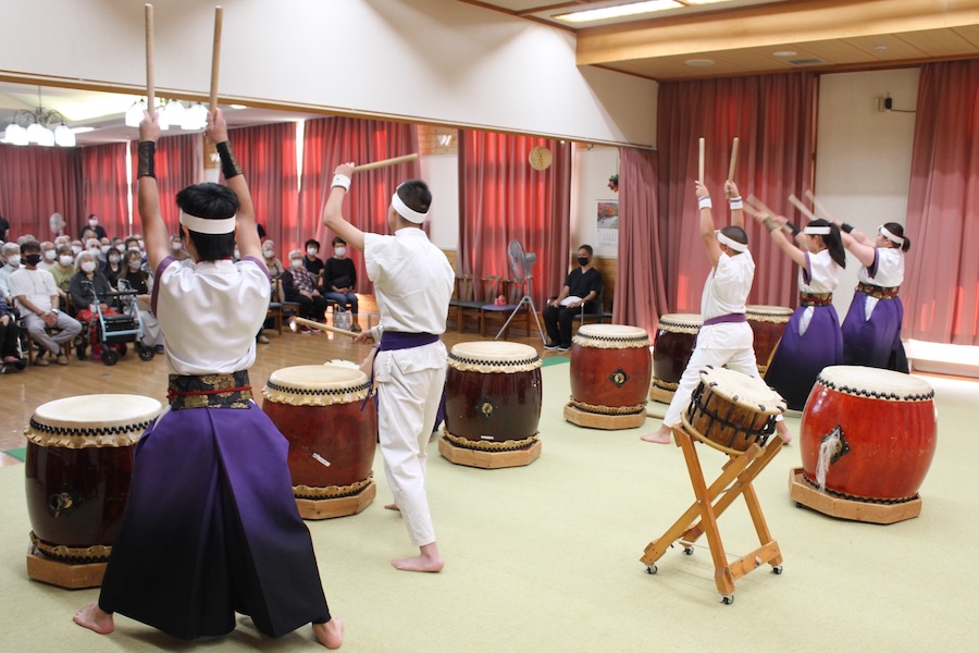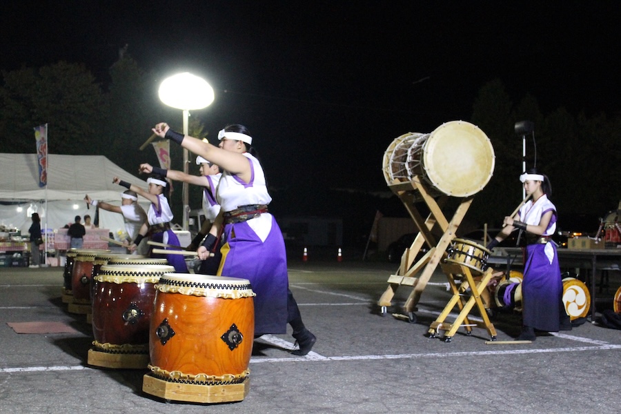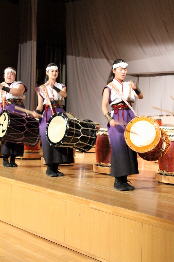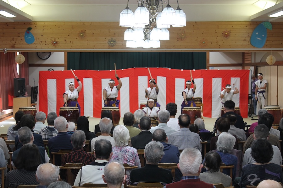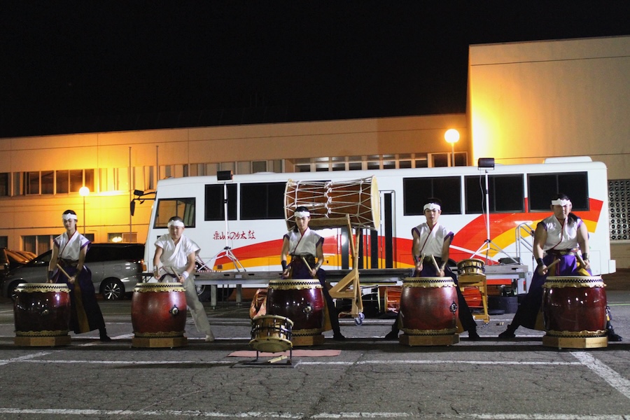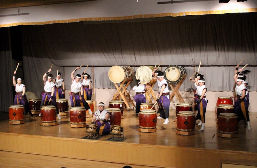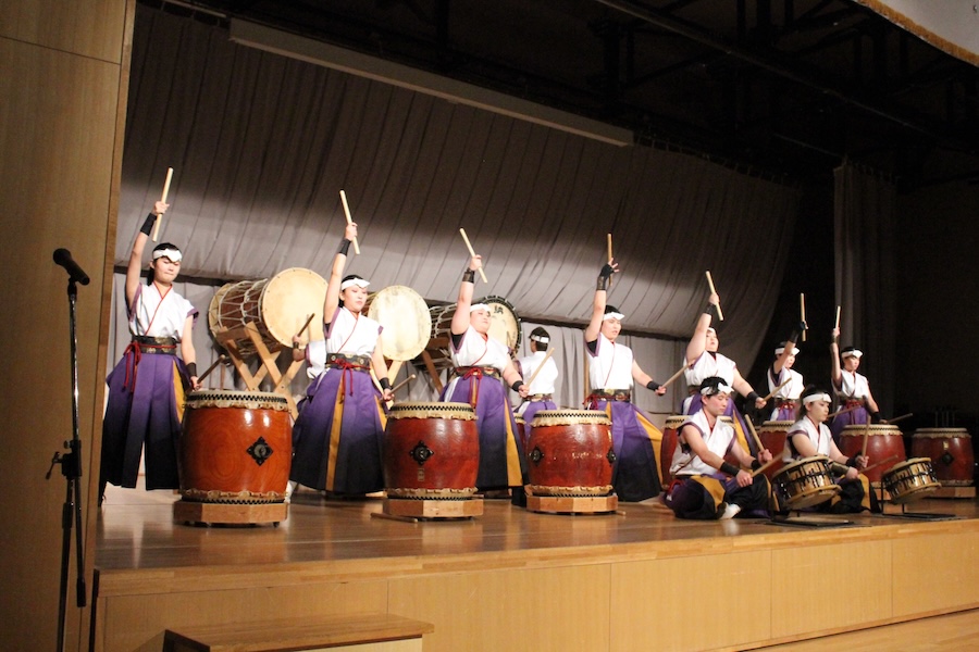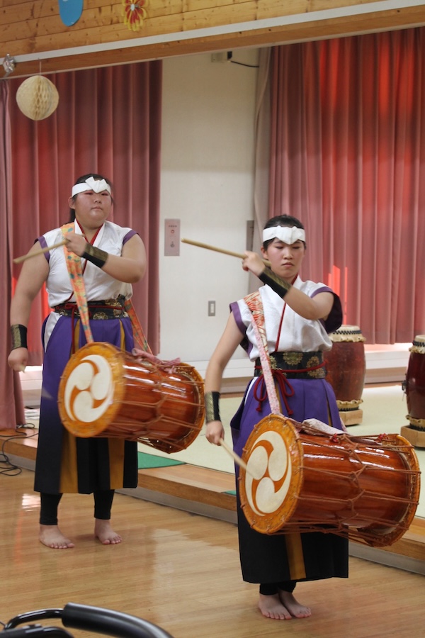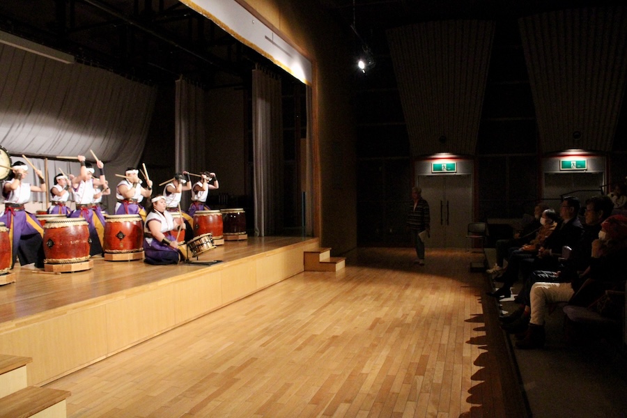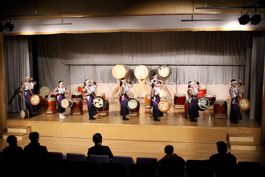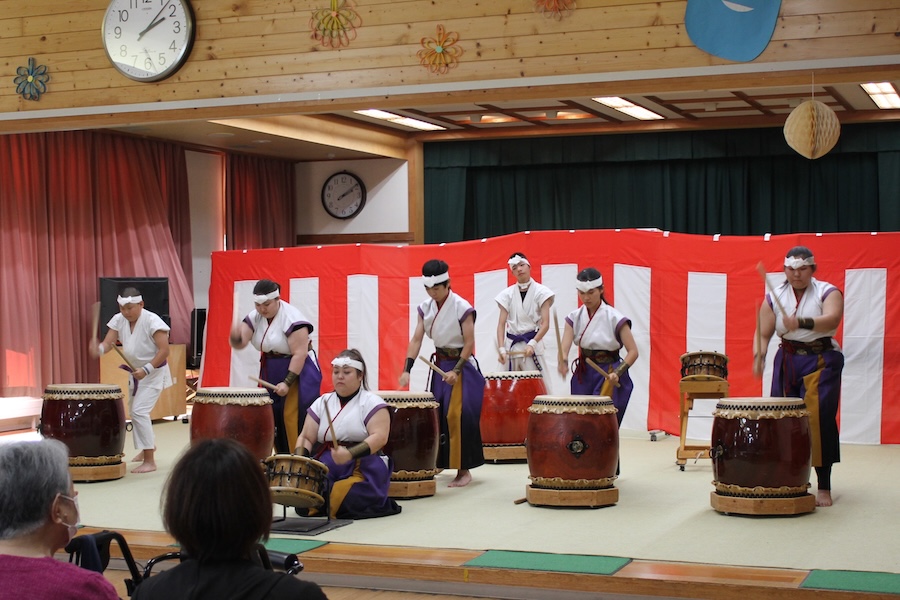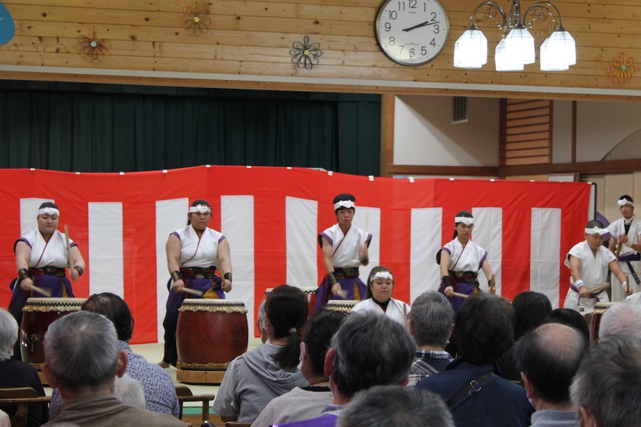 来賓からご挨拶をいただいた後は、さっそく演奏開始。栗山みのり太鼓、全曲を演奏しました。