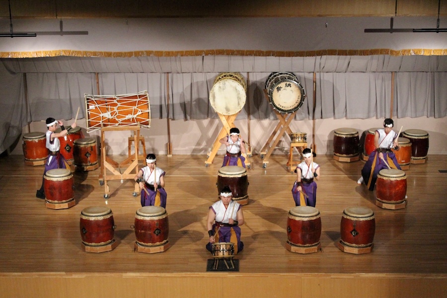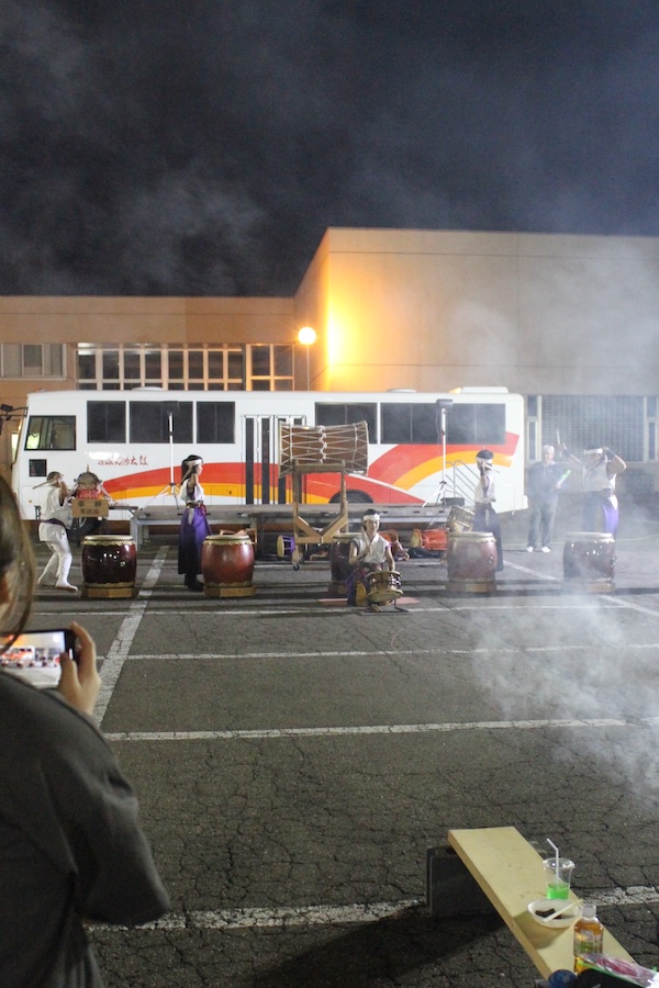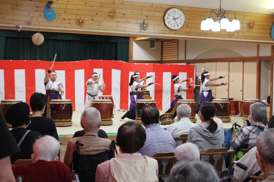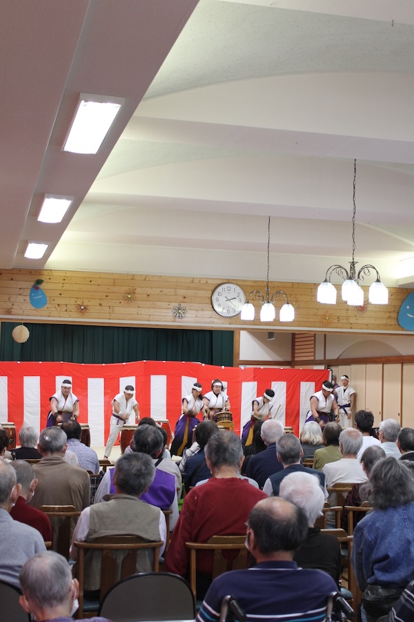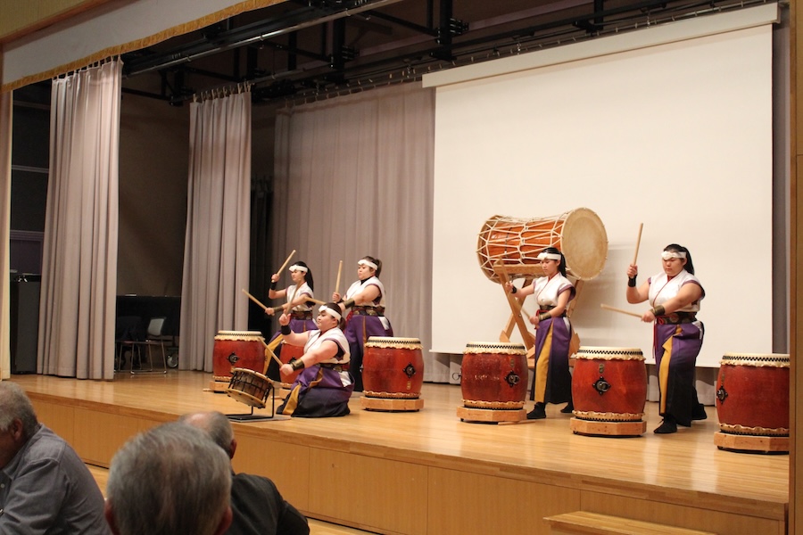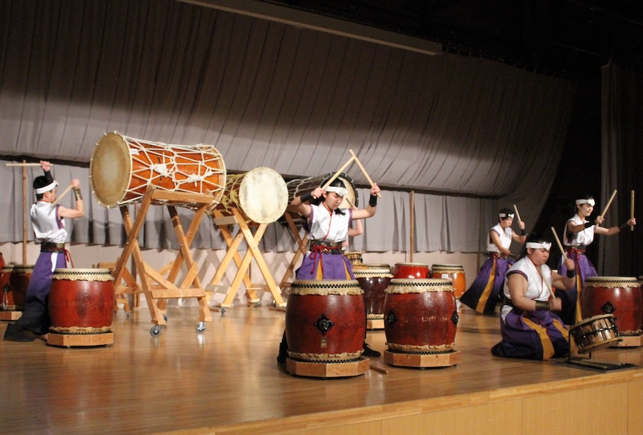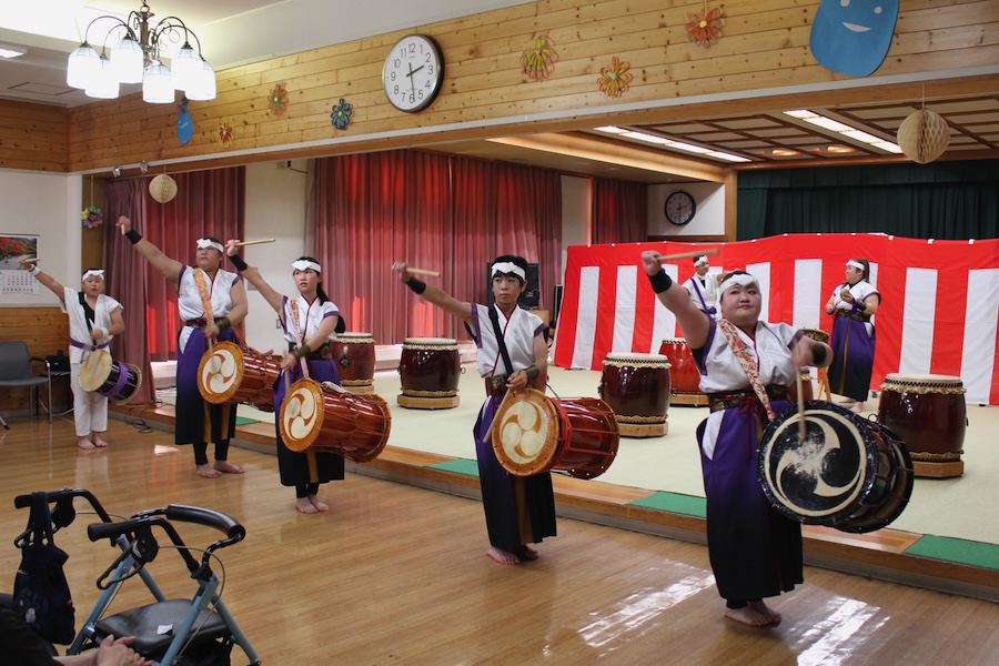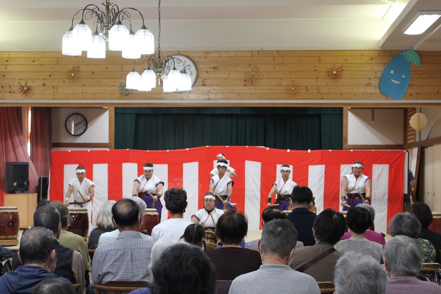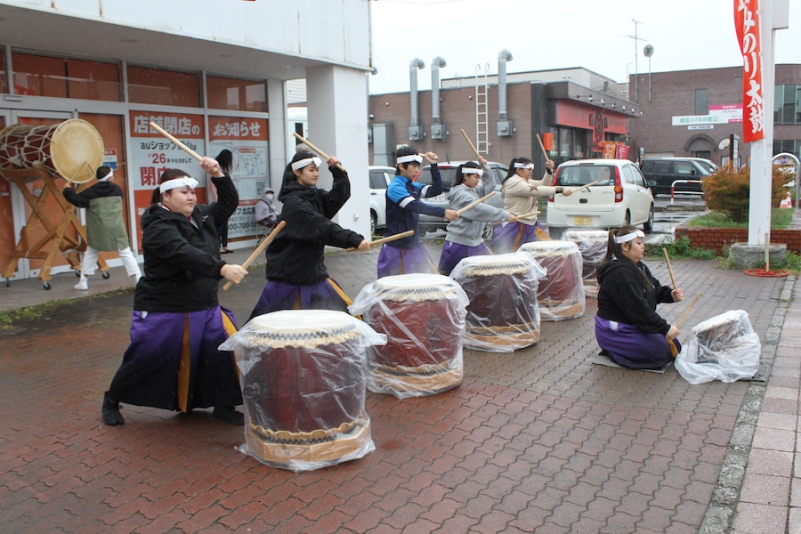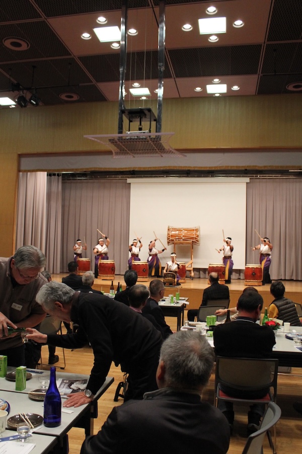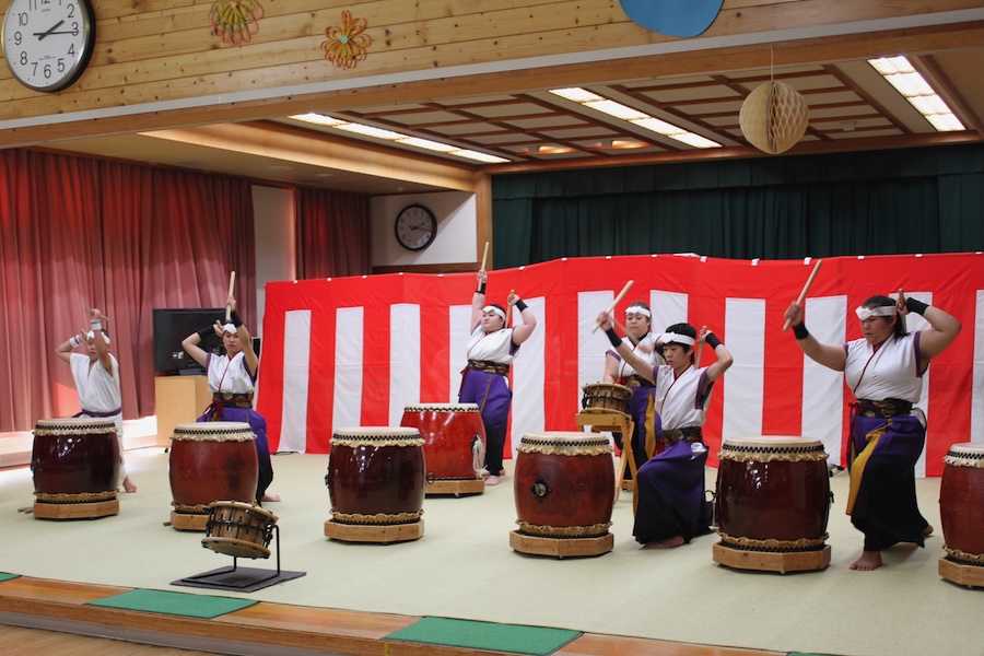 来賓からご挨拶をいただいた後は、さっそく演奏開始。栗山みのり太鼓、全曲を演奏しました。