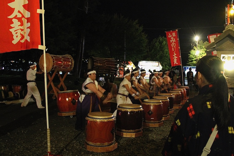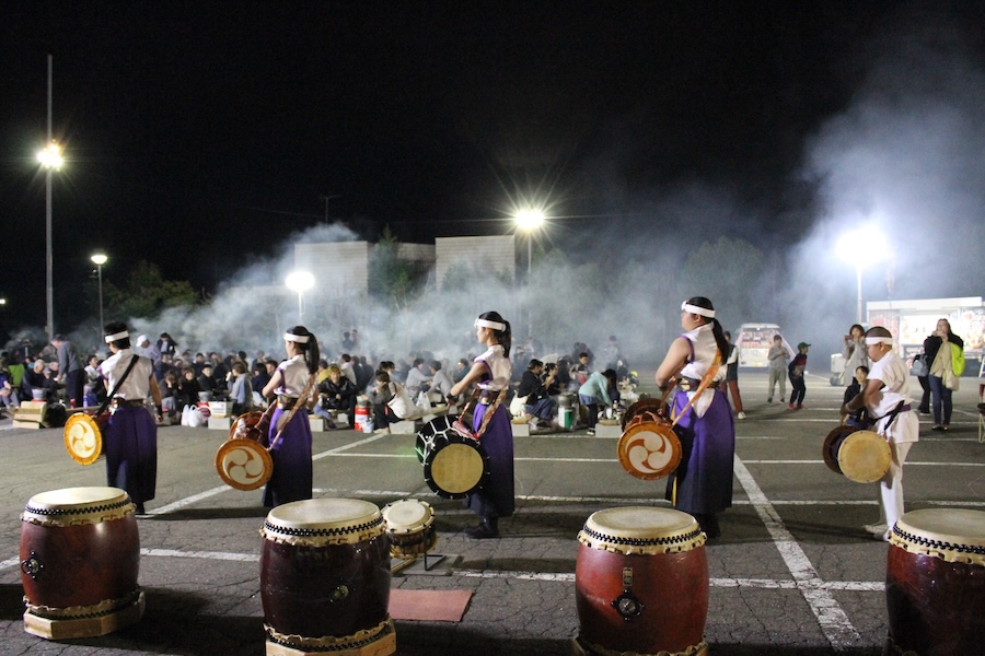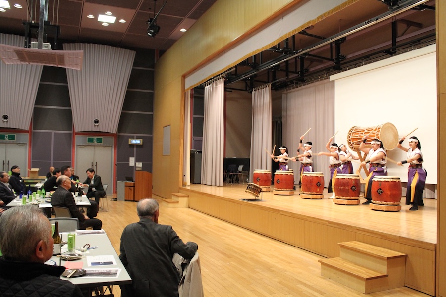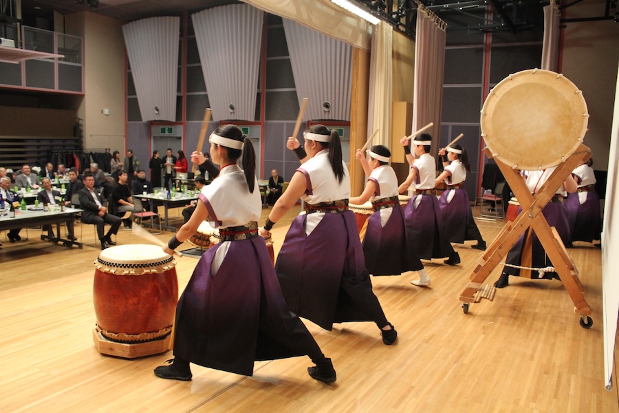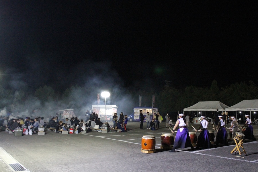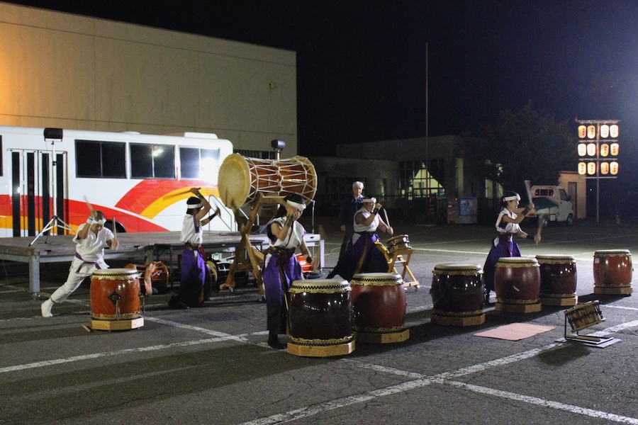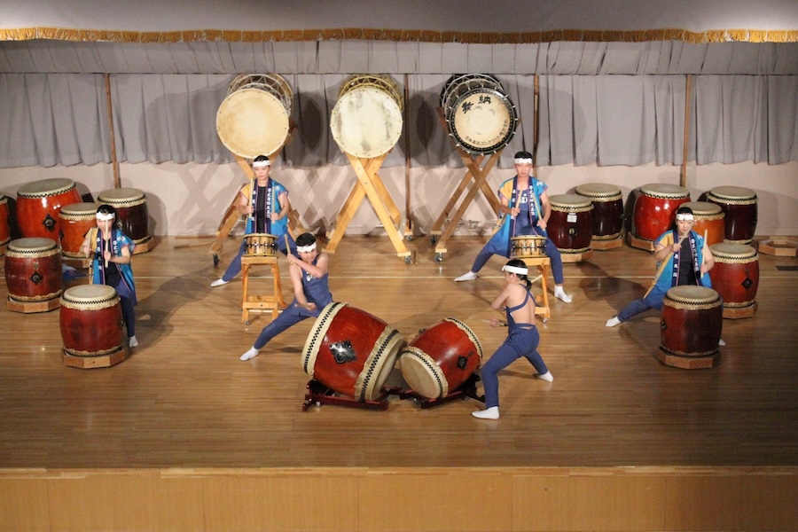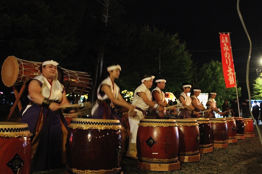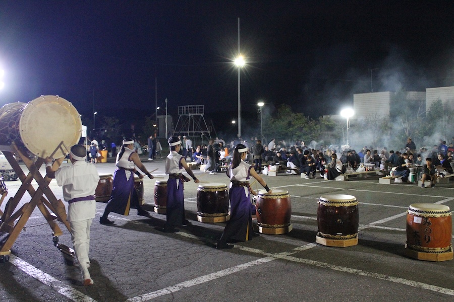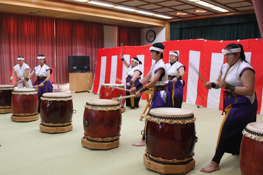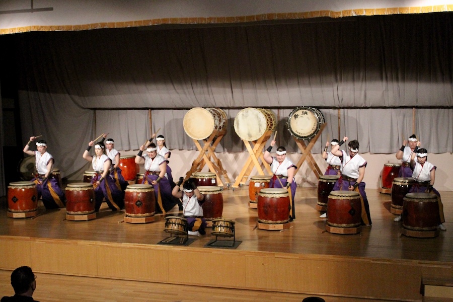 来賓からご挨拶をいただいた後は、さっそく演奏開始。栗山みのり太鼓、全曲を演奏しました。
