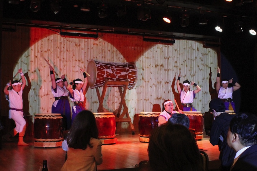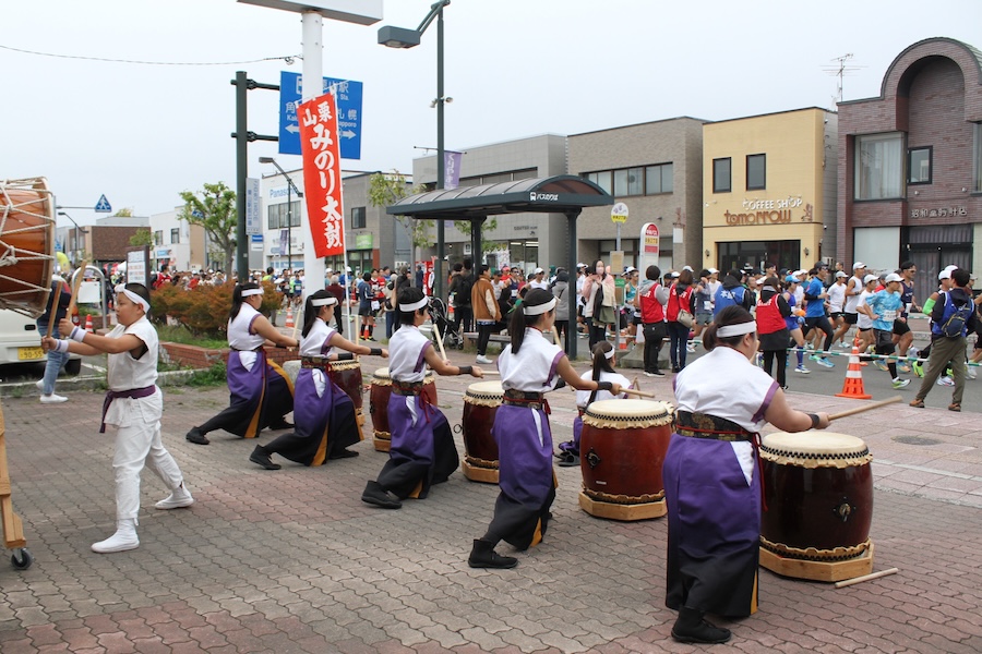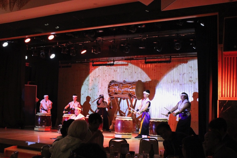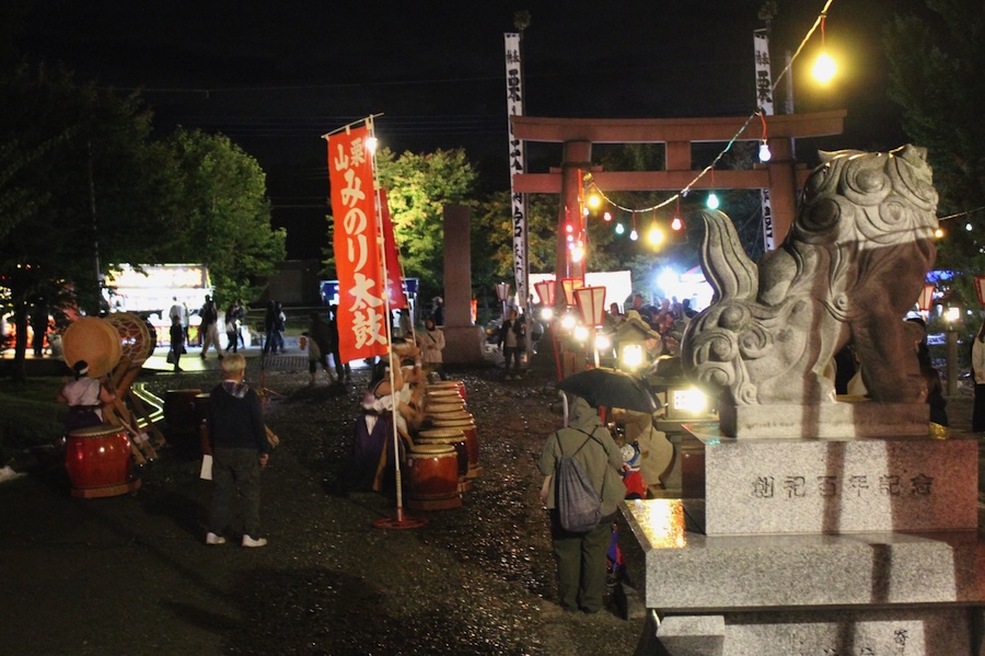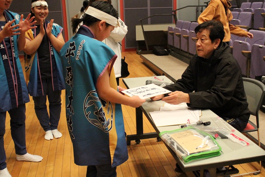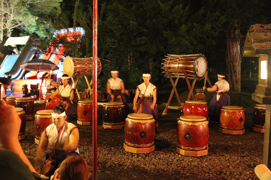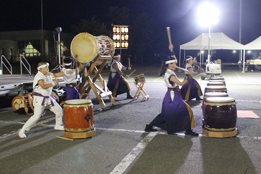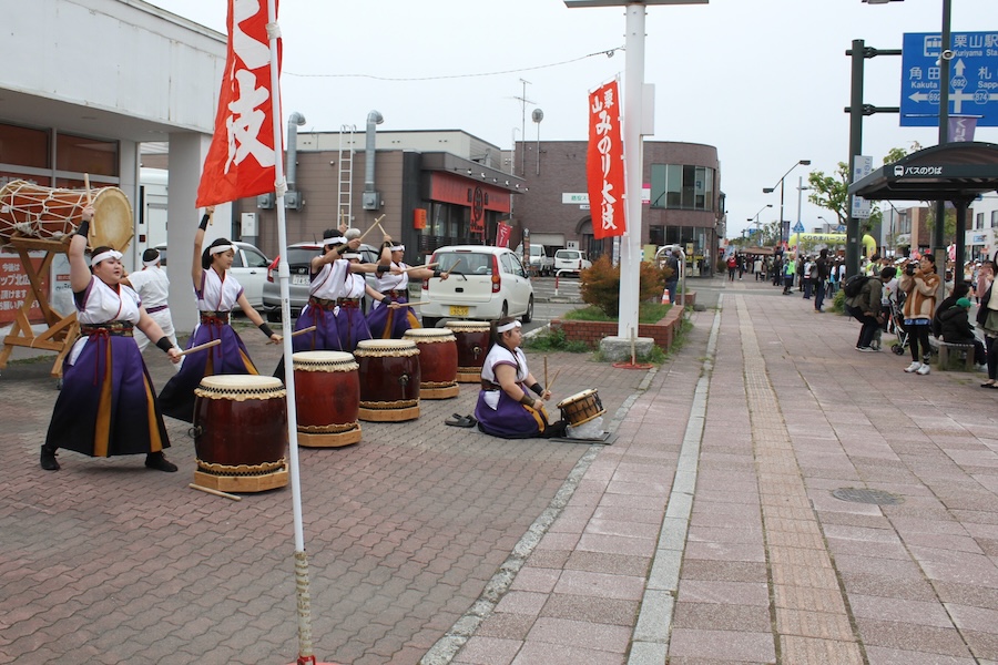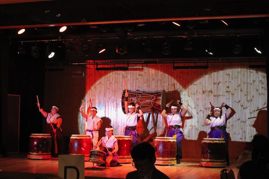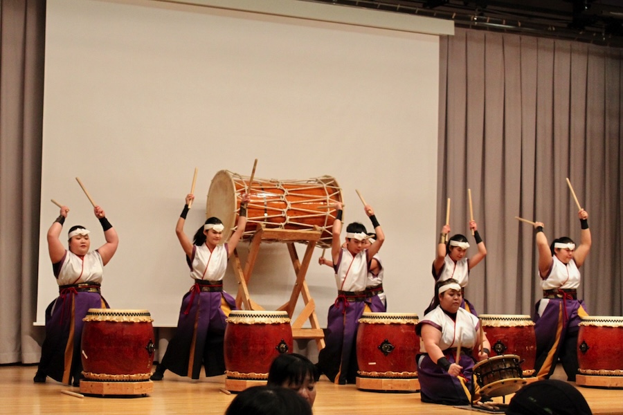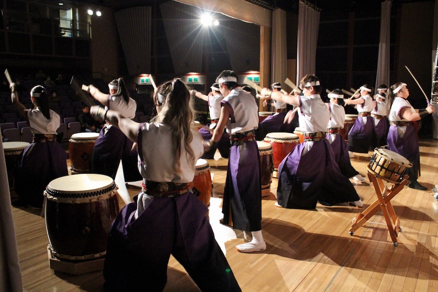 来賓からご挨拶をいただいた後は、さっそく演奏開始。栗山みのり太鼓、全曲を演奏しました。