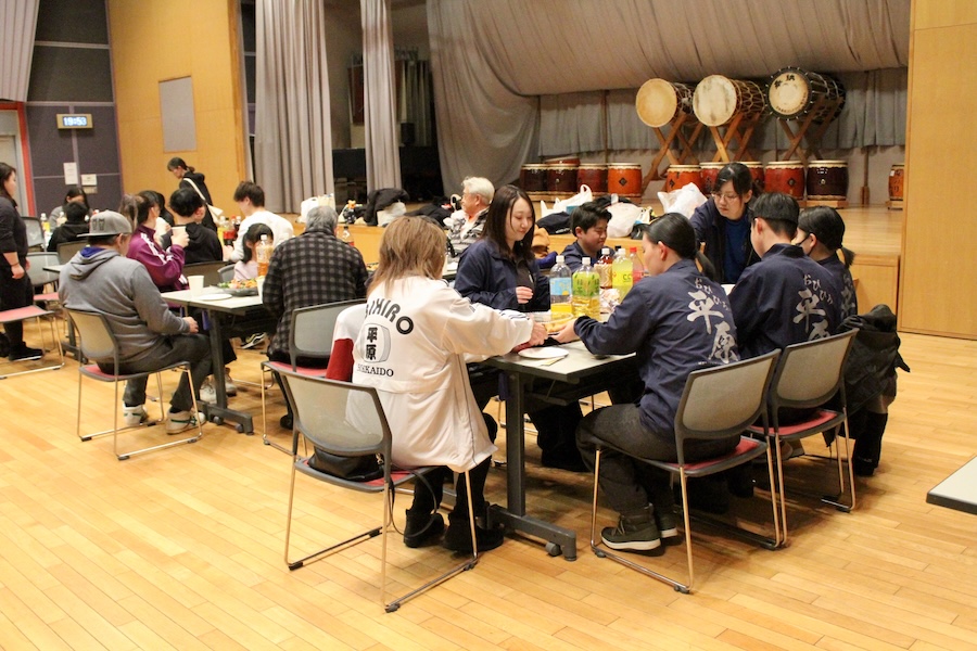 相変わらず長い前置きですが、2025年の打ち納めのようすを報告します。10年も前のレギュラーメンバーがほぼ、集まってくれて、社会人や大学生になっても、衰えることのない技をみてくれました。いや、よかったです。「雅曲〜『臨』」という複雑なリズムの曲を、往年の大人チームと、高校生を筆頭とする若手(?)チームが叩き比べる、という趣向もありました。また、今年はゲストとして帯広市郷土芸能「帯広平原太鼓」さんも180kmの道のりを駆けつけてくれました。